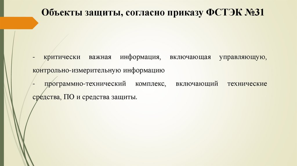 Объекты защиты, согласно приказу ФСТЭК №31-