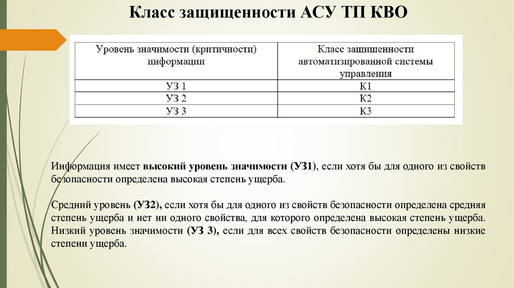 Класс защищенности АСУ ТП КВОИнформация имеет высокий уровень значимости (УЗ1), если хотя бы для одного из свойств