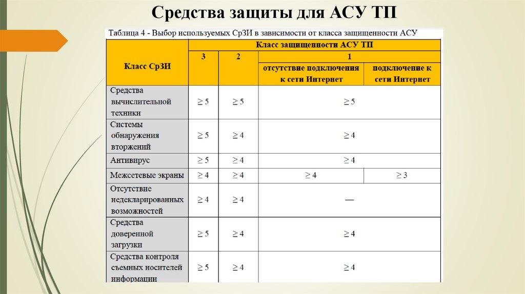 Классификация АСУ ТПКлассы защищенности АСУТП