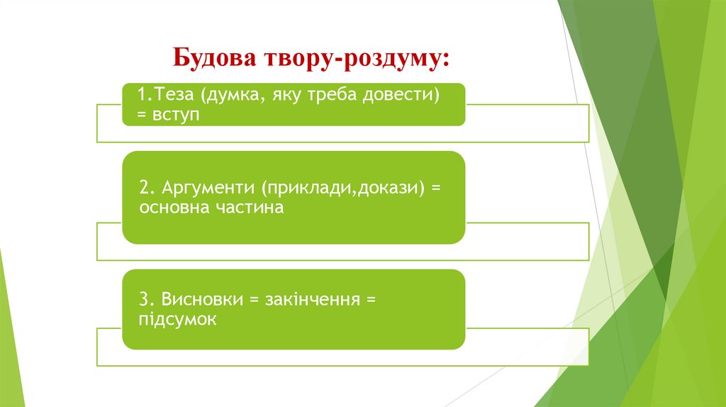 Будова твору-роздуму:1.Теза (думка, яку треба довести)