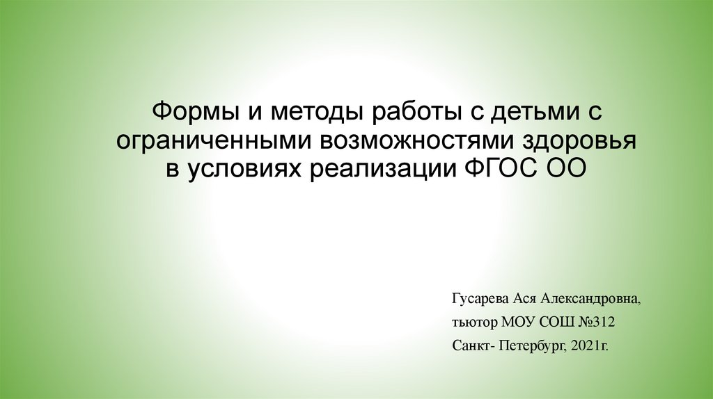 1. Формы и методы работы с детьми с ограниченными возможностями здоровья в условиях реализации ФГОС ОО