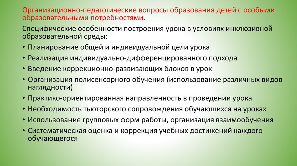 Организационно-педагогические вопросы образования детей с особымиобразовательными потребностями.