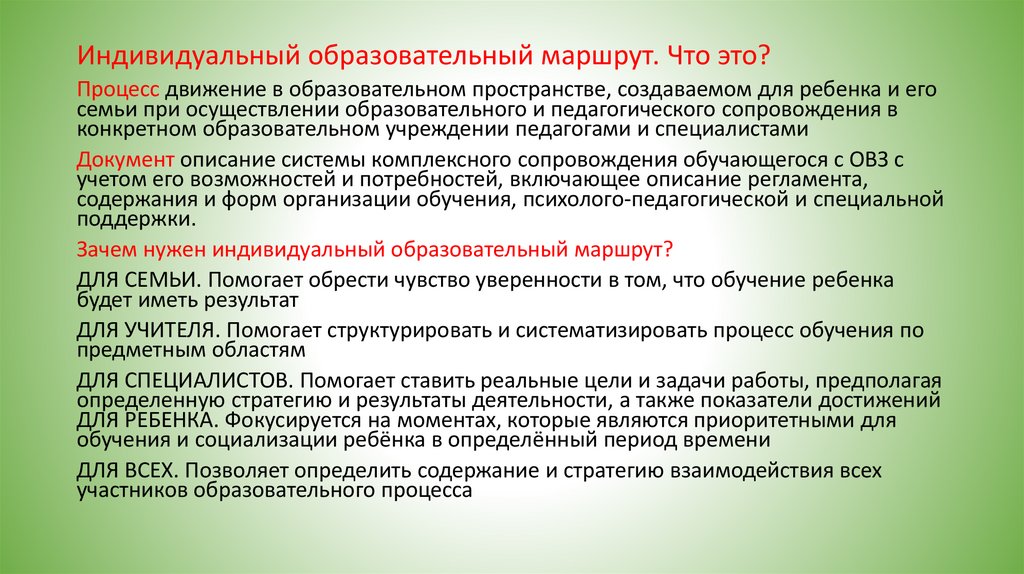 потребностях ребёнка и его семьи. Не ребёнок «вписывается» в