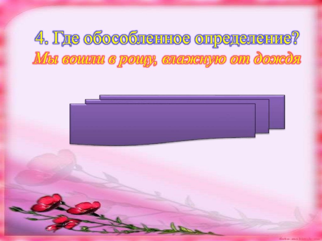 4. Где обособленное определение?Мы вошли в рощу, влажную от дождя