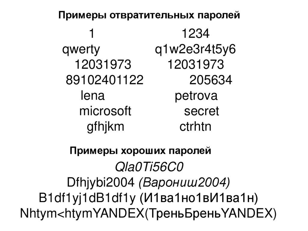 Примеры отвратительных паролей1