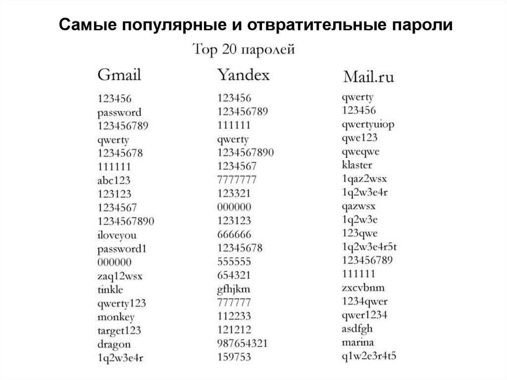Самые популярные и отвратительные пароли17.