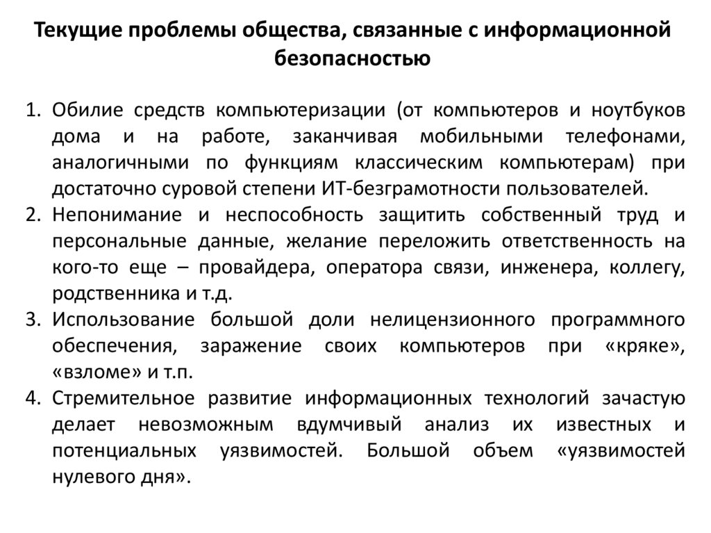 Текущие проблемы общества, связанные с информационнойбезопасностью