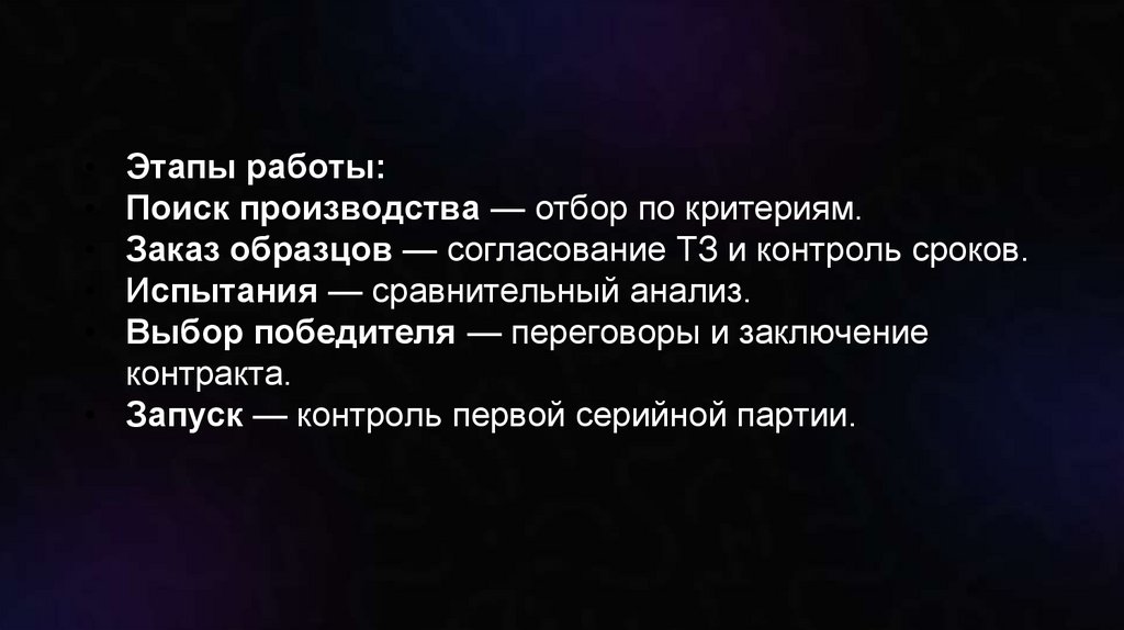 Заказ образцов — согласование ТЗ и контроль сроков.
