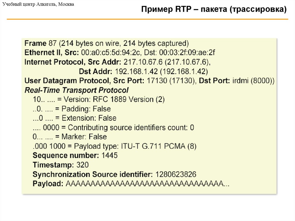 Учебный центр Алкатель, МоскваПример RTP – пакета (трассировка)