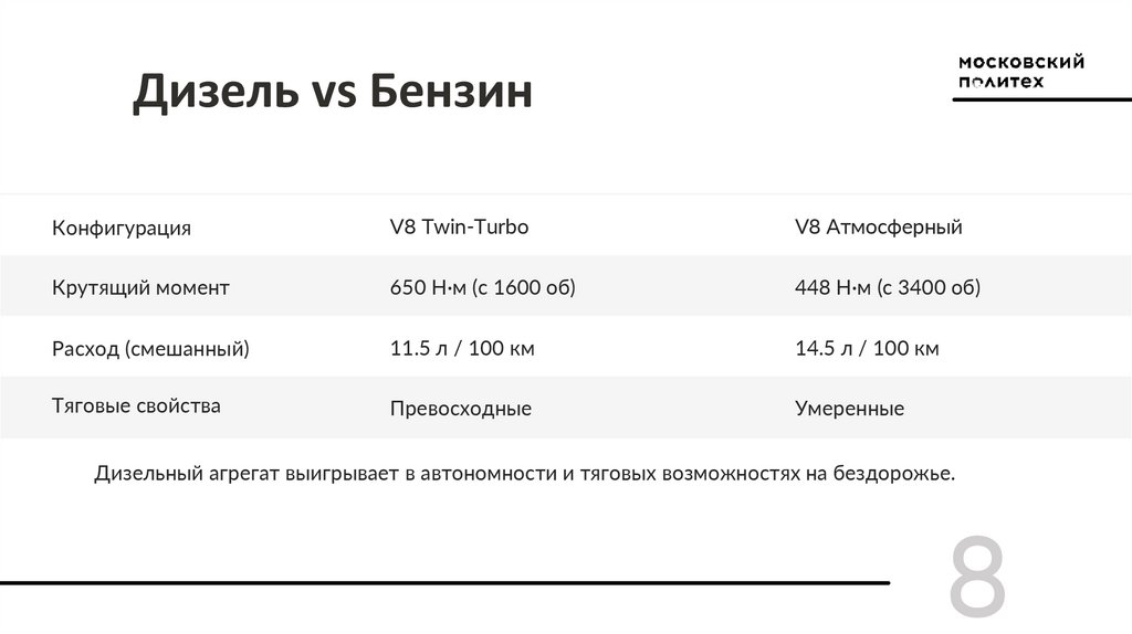 Дизельный агрегат выигрывает в автономности и тяговых возможностях на бездорожье.