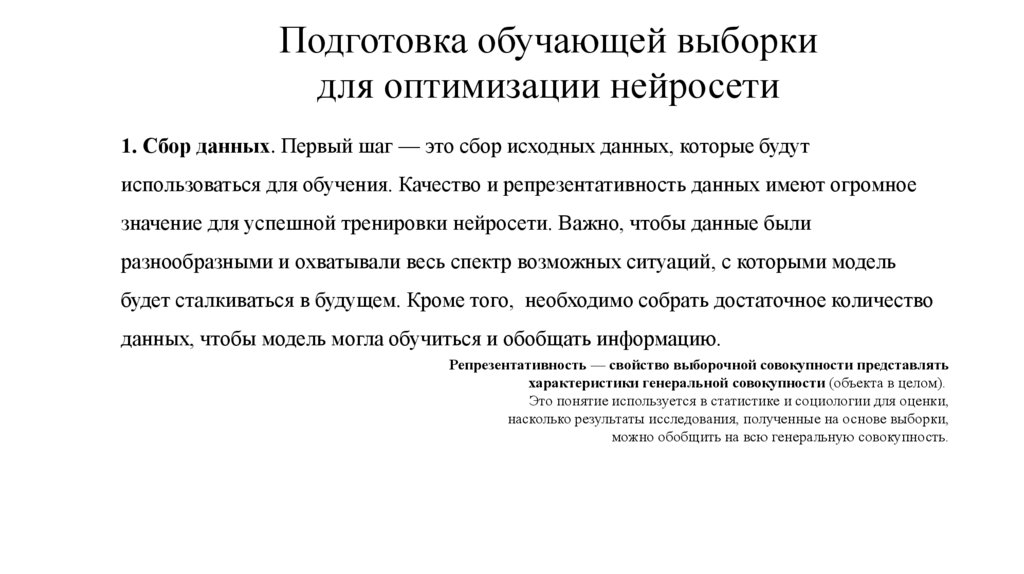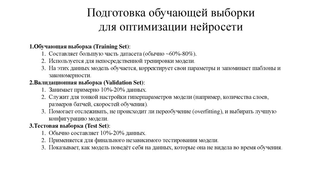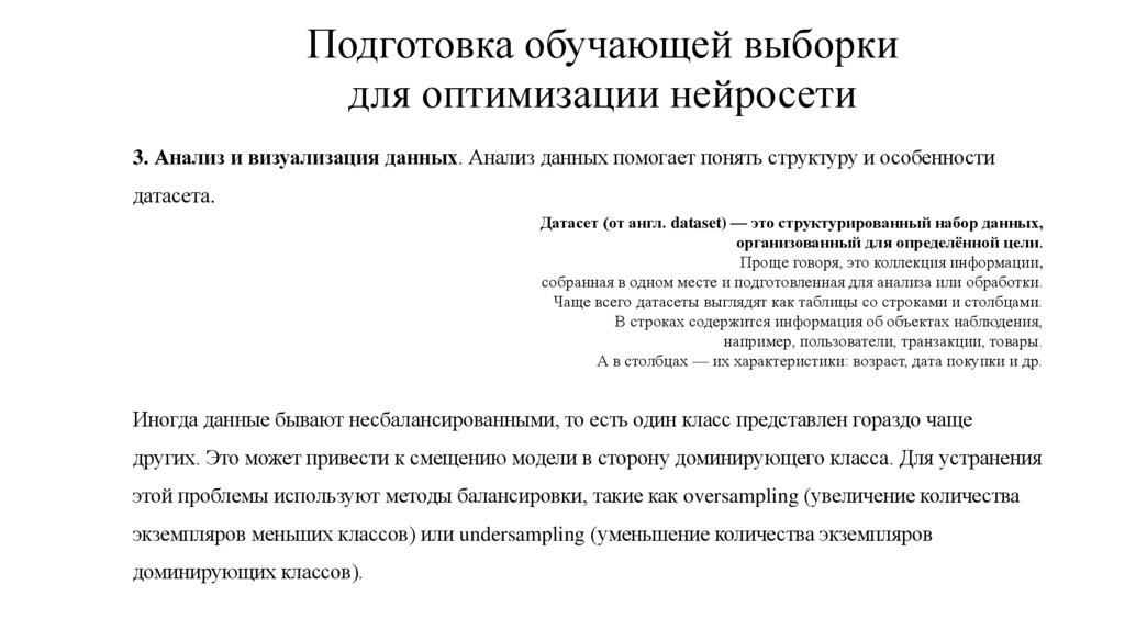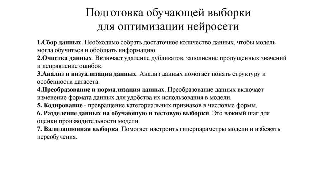 значение для успешной тренировки нейросети. Важно, чтобы данные были