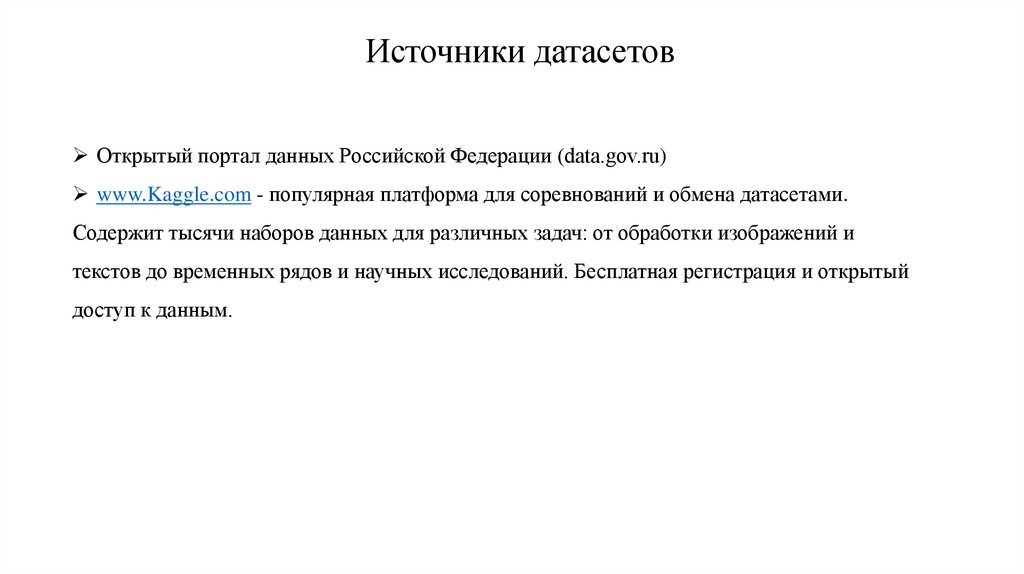 Источники датасетовОткрытый портал данных Российской Федерации (data.gov.ru)