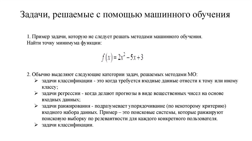 Задачи, решаемые с помощью машинного обучения1. Пример задачи, которую не следует решать методами машинного обучения.