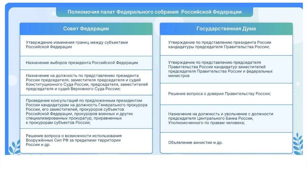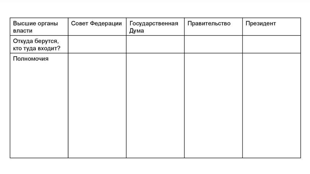 14. Домашнее задание: выполните задание на рабочем листе, сделайте себе шпаргалку по полномочиям высших органов власти в РФ