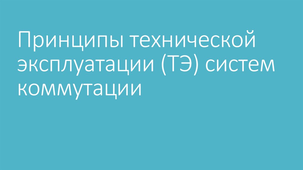 1. Принципы технической эксплуатации (ТЭ) систем коммутации