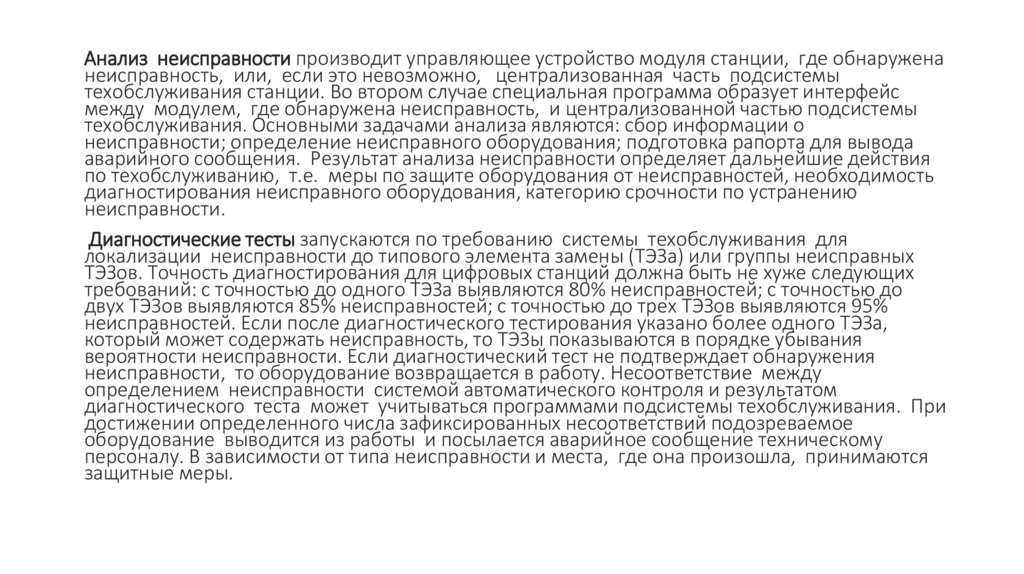 произошла неисправность, действие подсистемы техобслуживания после обнаружения неисправности