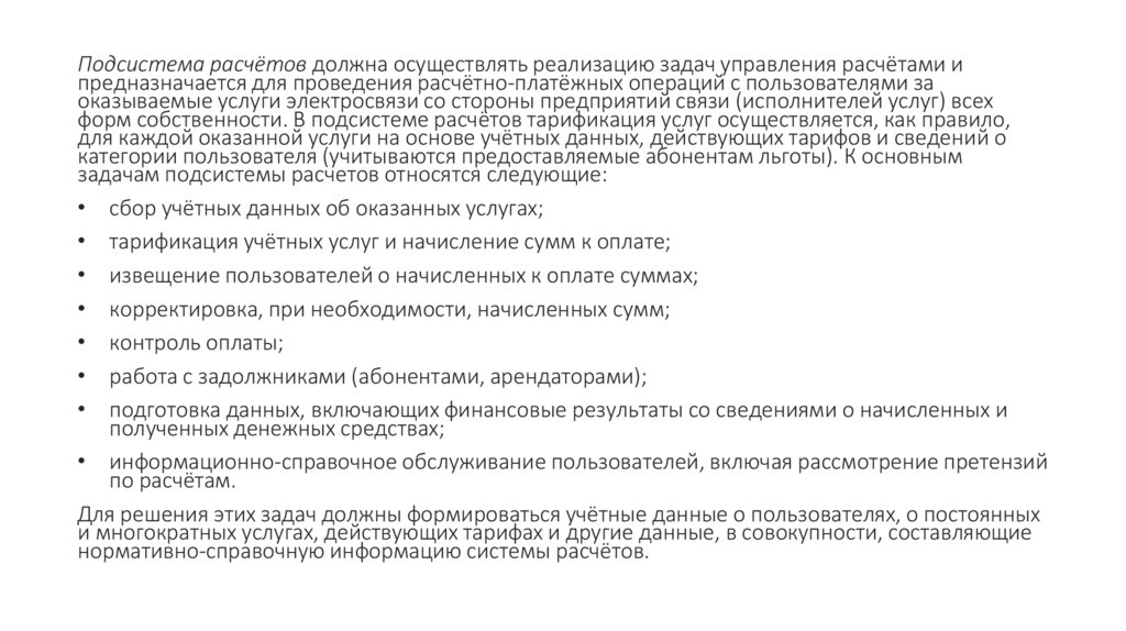 форм собственности. В подсистеме расчётов тарификация услуг осуществляется, как правило,