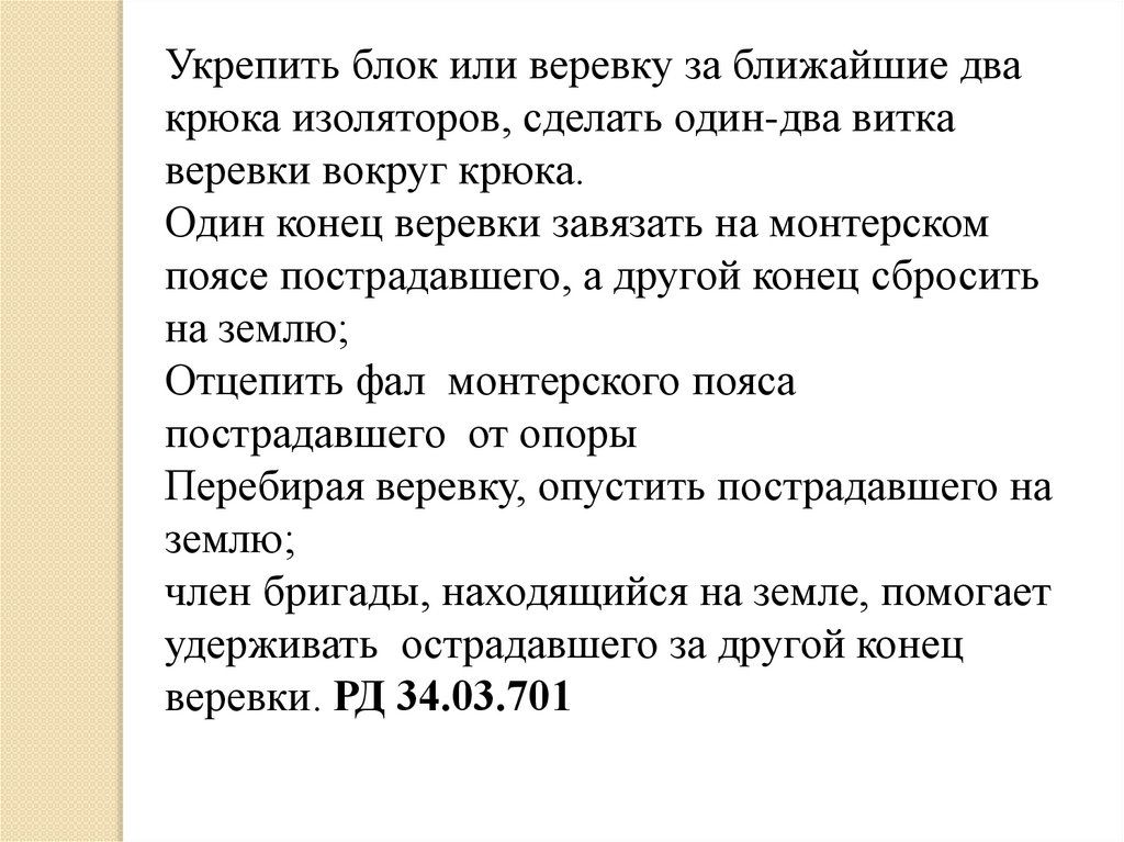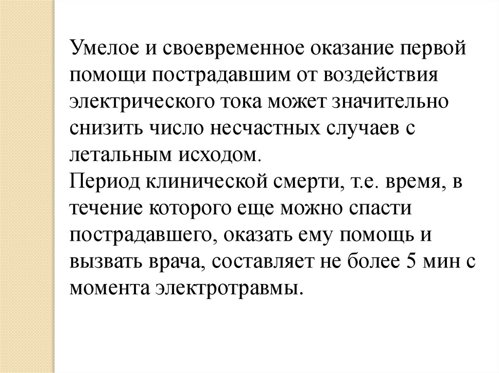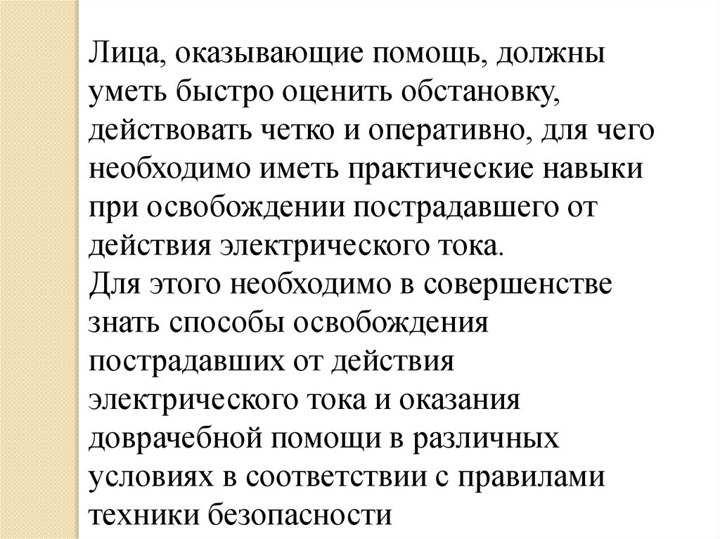 Необходимо как можно быстрееосвободить пострадавшего от действия