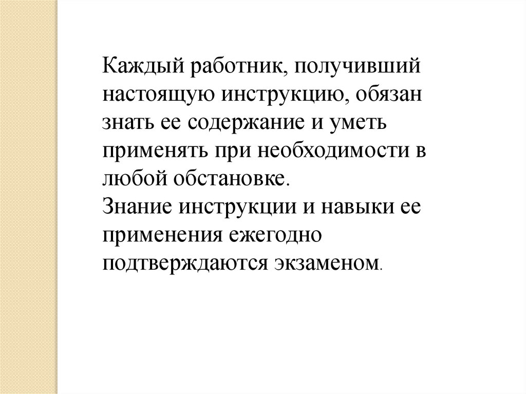 Каждый работник обязан знать ивыполнять требования по безопасности