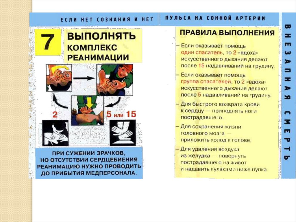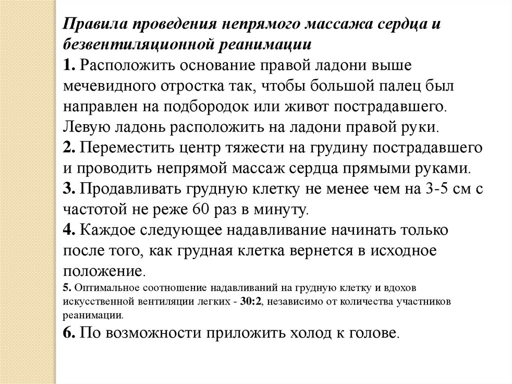 Правила проведения непрямого массажа сердца ибезвентиляционной реанимации