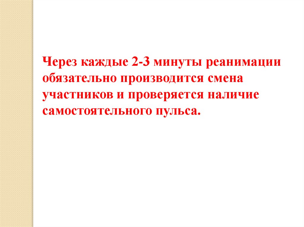 Через каждые 2-3 минуты реанимацииобязательно производится смена