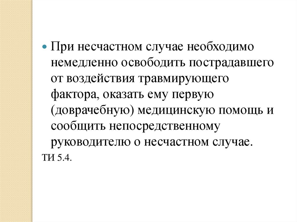 При несчастном случае необходимонемедленно освободить пострадавшего