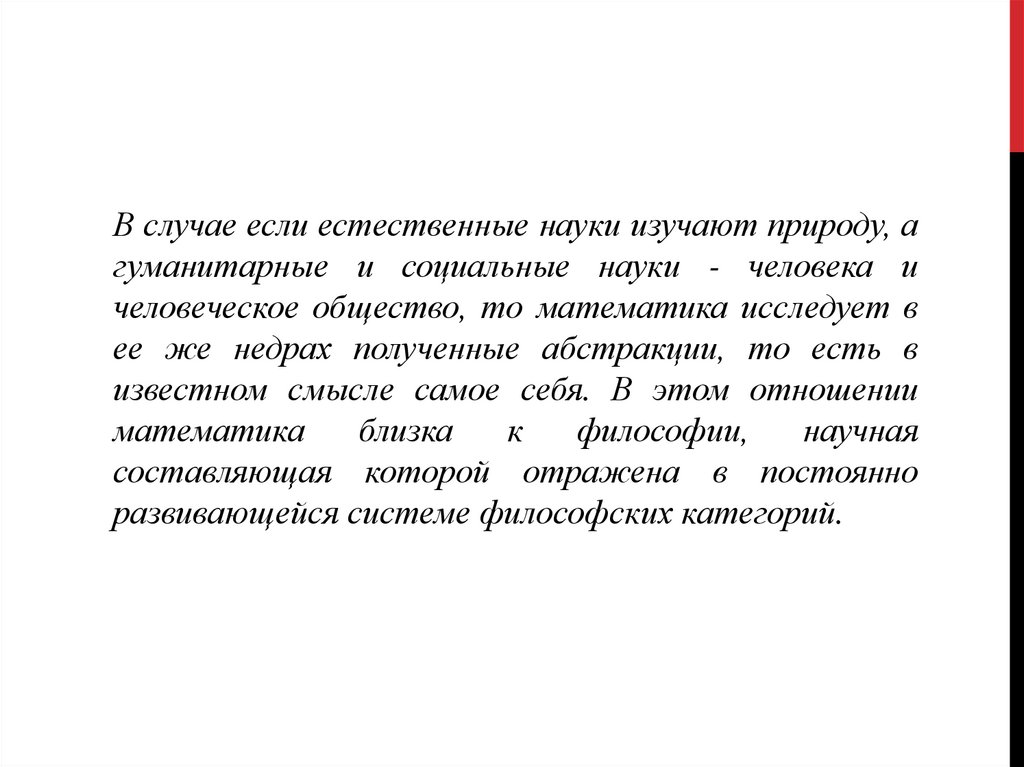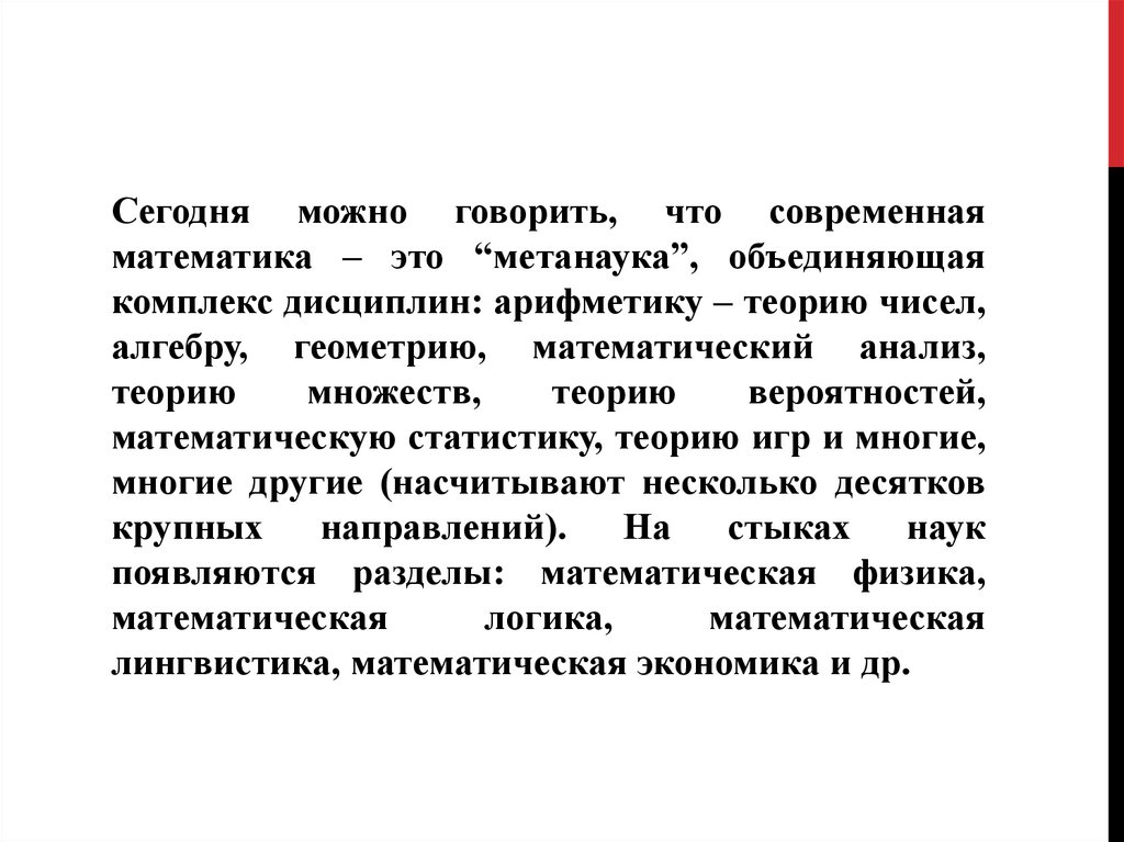 Сегодня можно говорить, что современнаяматематика – это “метанаука”, объединяющая