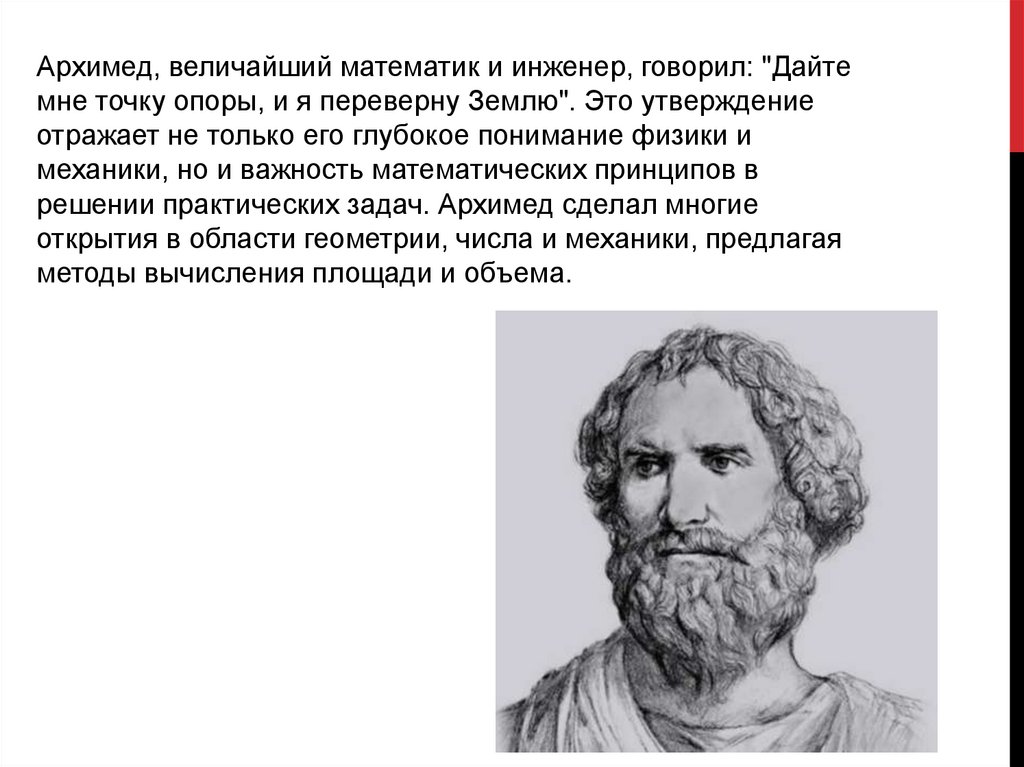 Архимед, величайший математик и инженер, говорил: "Дайтемне точку опоры, и я переверну Землю". Это утверждение