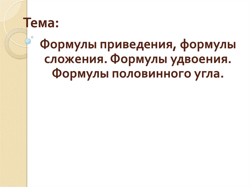 Лекция 3.2. Формулы приведения, формулы сложения , формулы удвоения, формулы половинного угла