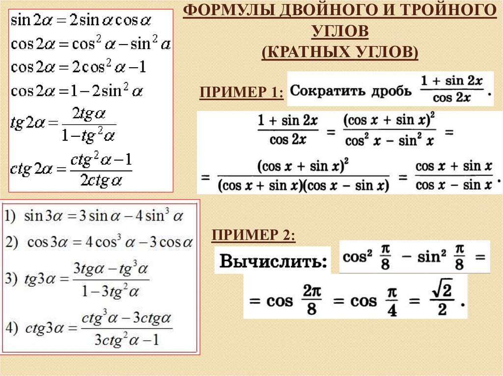 ФОРМУЛЫ ДВОЙНОГО И ТРОЙНОГОУГЛОВ