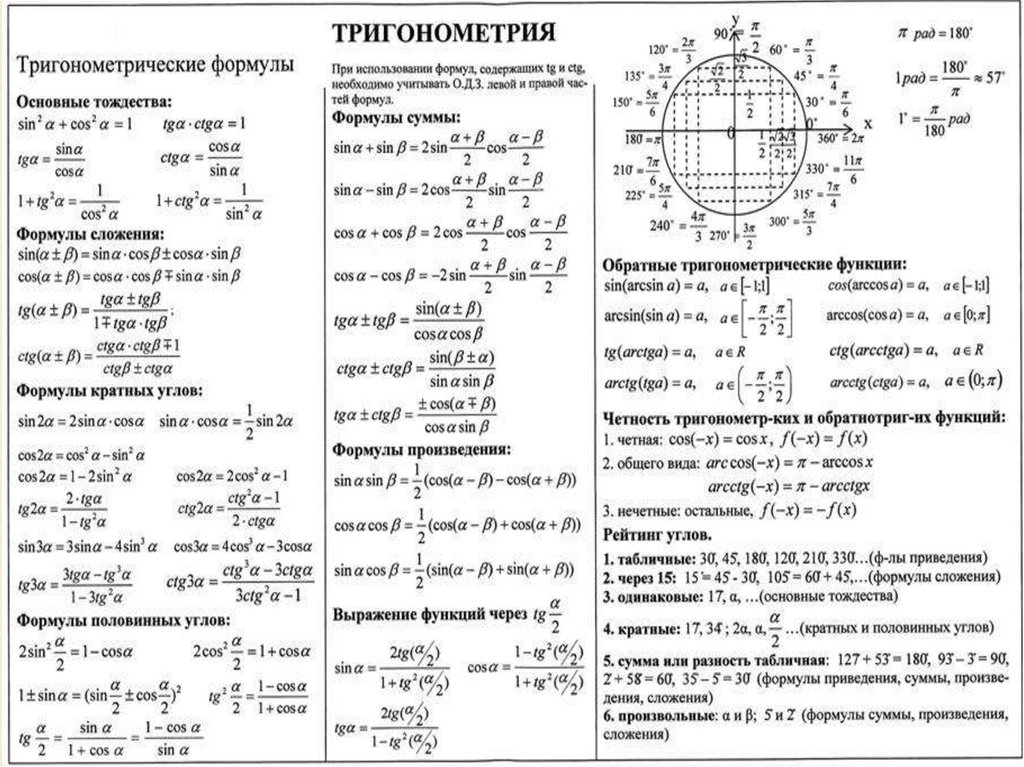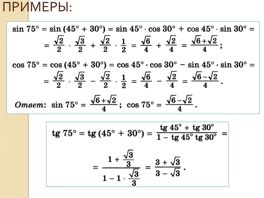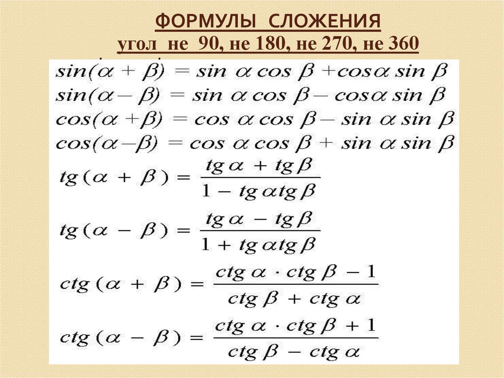 ФОРМУЛЫ СЛОЖЕНИЯугол не 90, не 180, не 270, не 360