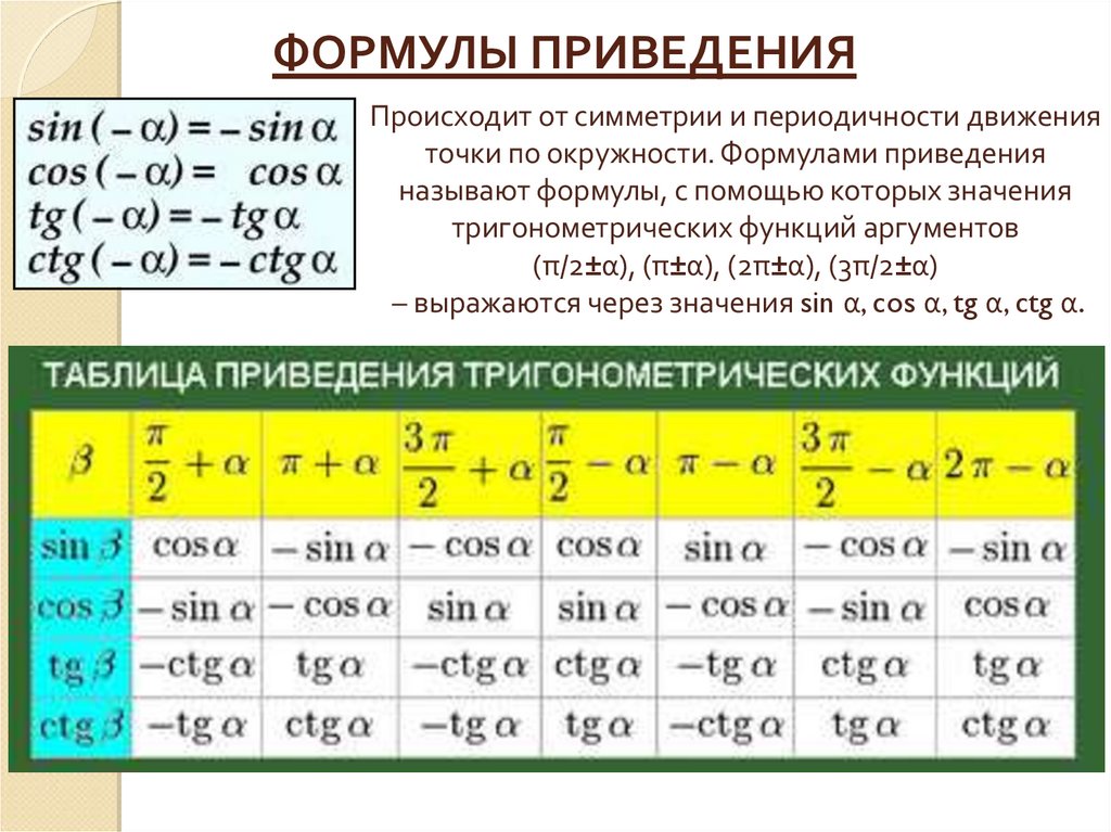 ФОРМУЛЫ ПРИВЕДЕНИЯПроисходит от симметрии и периодичности движения