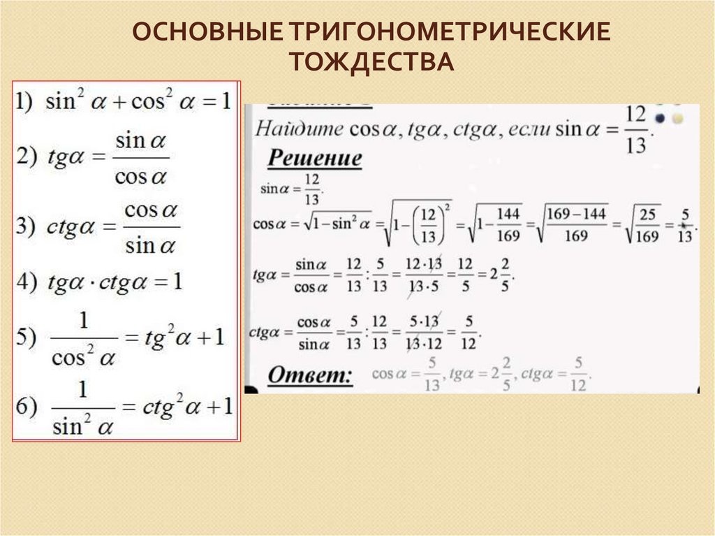 ОСНОВНЫЕ ТРИГОНОМЕТРИЧЕСКИЕТОЖДЕСТВА