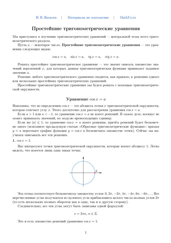 Простейшие тригонометрические уравнения
