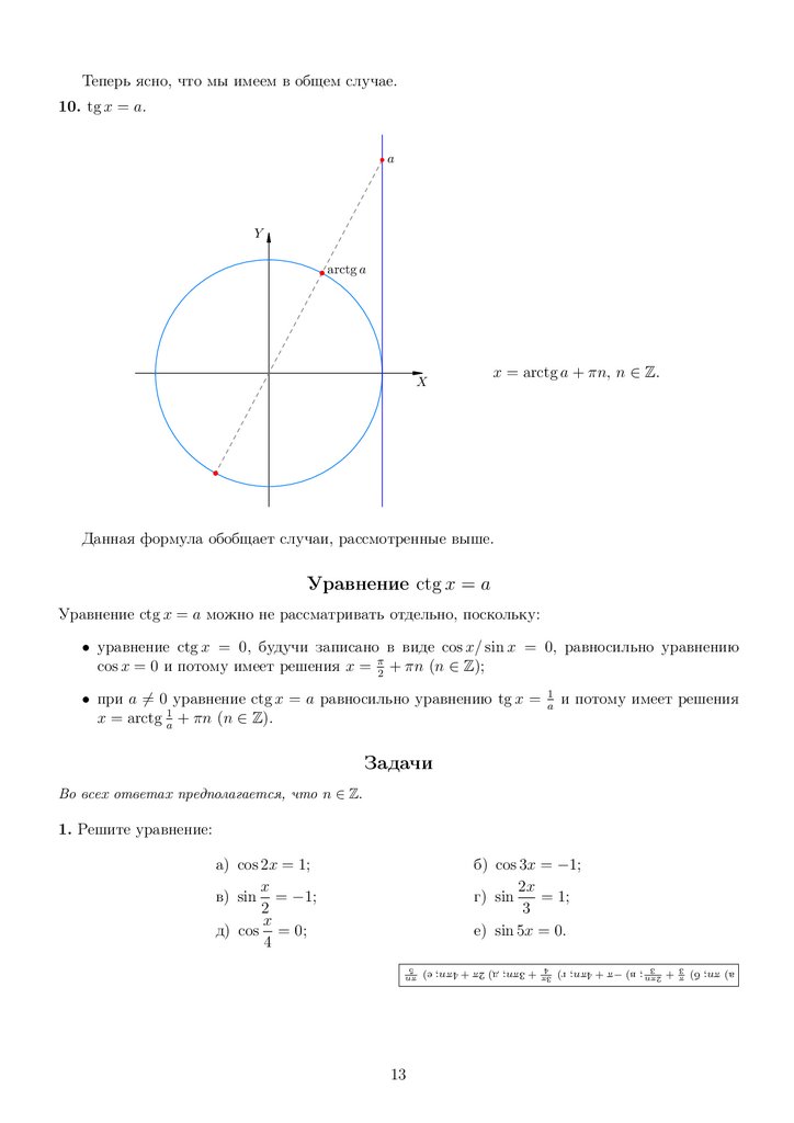 ctg x = a.
