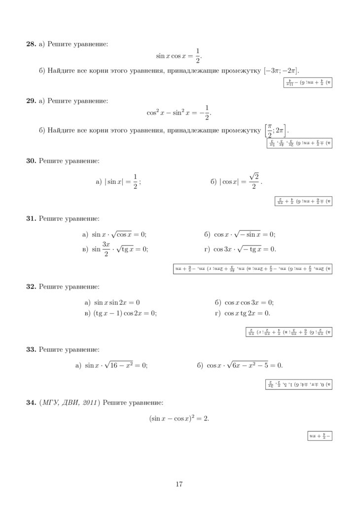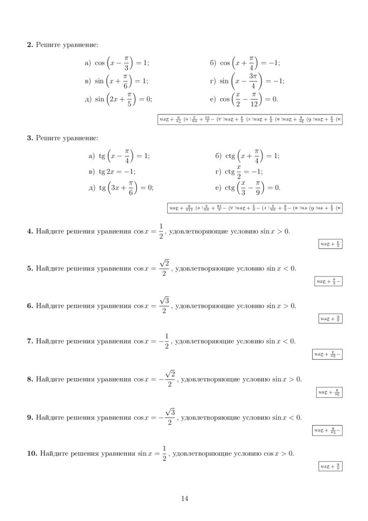 г) cos 3x · − tg x = 0.