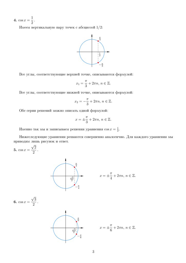 Именно так мы и записываем решения уравнения cos x = 12 .