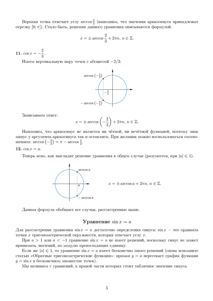 Уравнение cos x = a