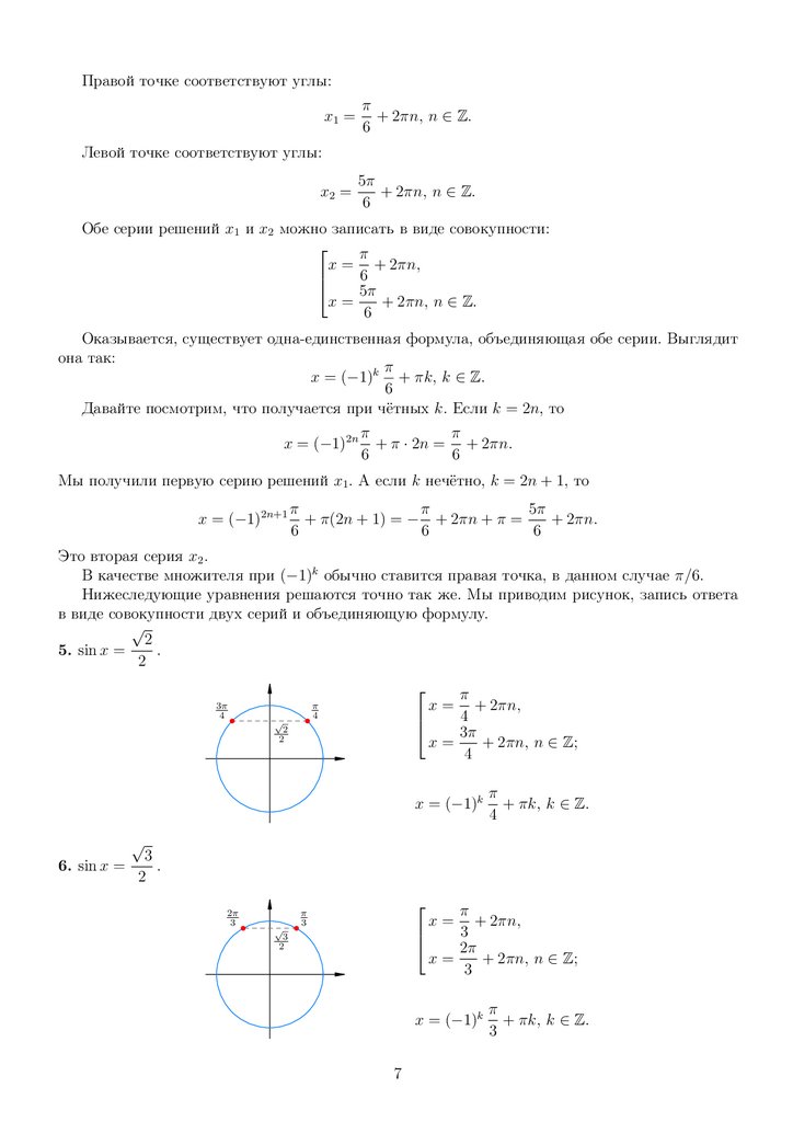 оборотов в обе стороны, то есть на целое число полных углов. Следовательно, все решения