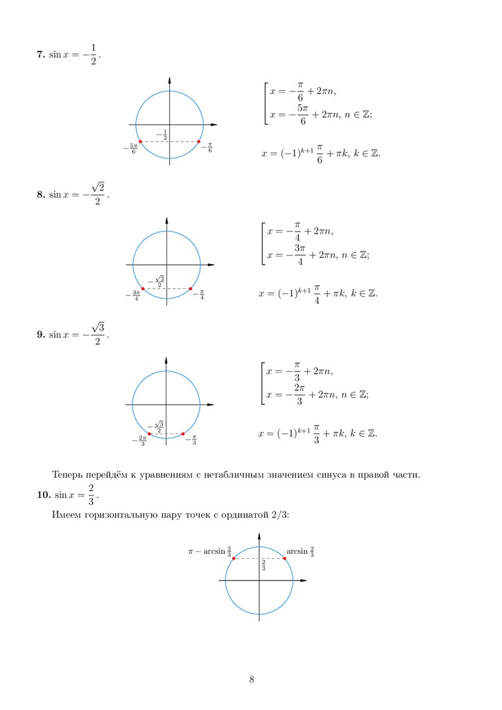 Решить простейшее тригонометрическое уравнение — это значит описать множество значений переменной x, для которых данная тригонометрическая функция принимает заданное