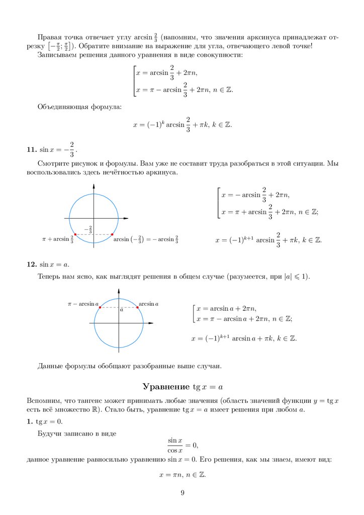 y = a пересекает график функции y = cos x в бесконечном множестве точек). Сейчас мы научимся описывать все эти решения.