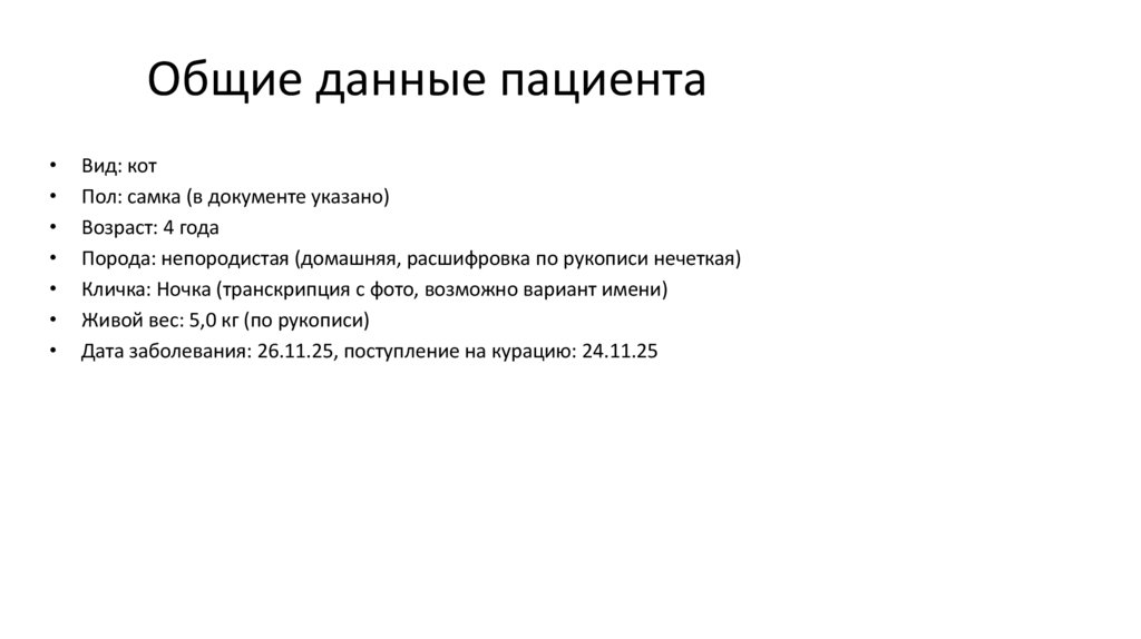 Дата заболевания: 26.11.25, поступление на курацию: 24.11.25