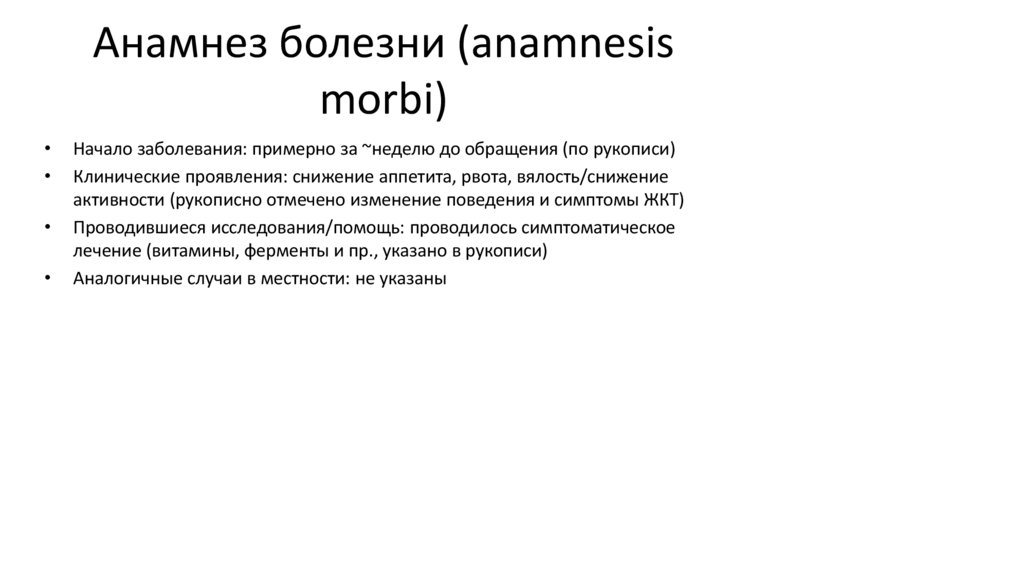 Начало заболевания: примерно за ~неделю до обращения (по рукописи)