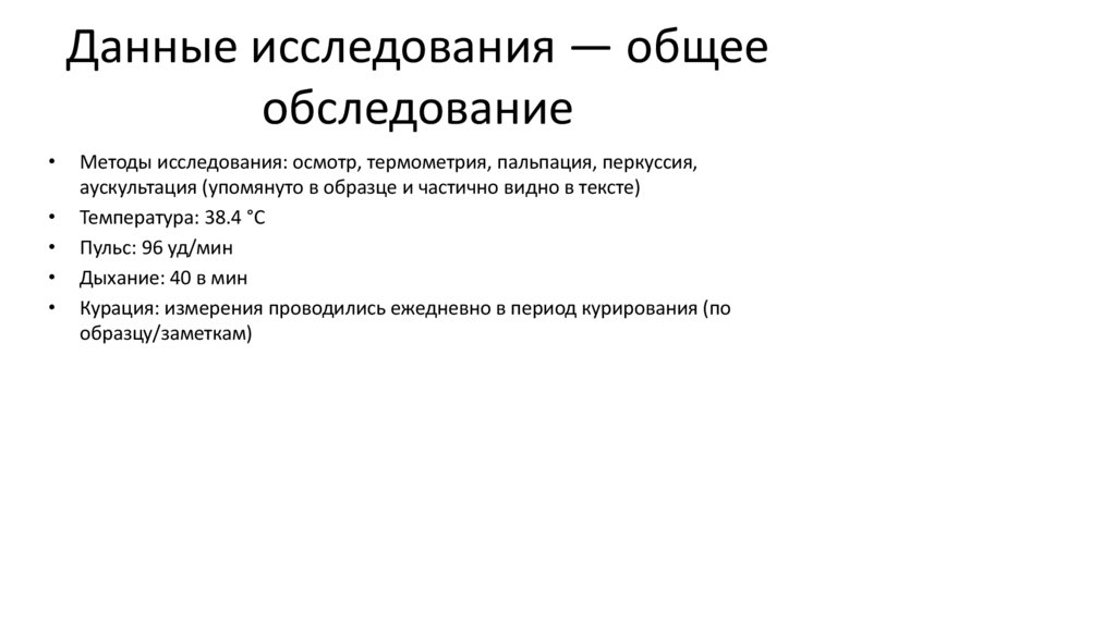 Методы исследования: осмотр, термометрия, пальпация, перкуссия,