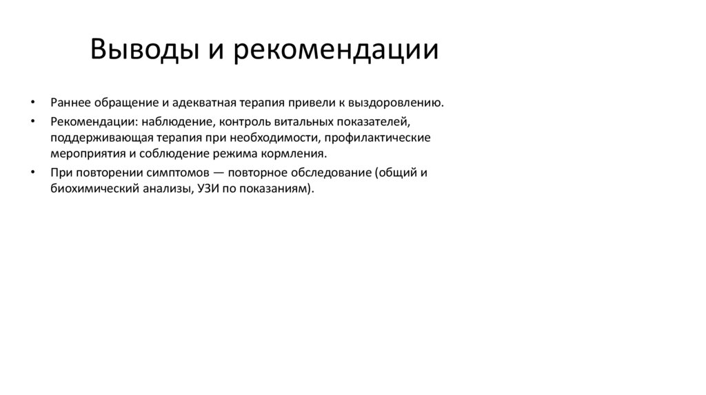 Выводы и рекомендацииРаннее обращение и адекватная терапия привели к выздоровлению.