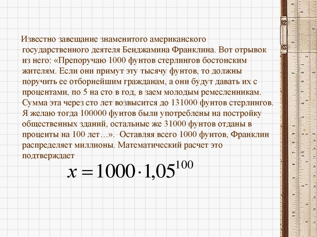 проценты на 100 лет…». Оставляя всего 1000 фунтов, Франклин