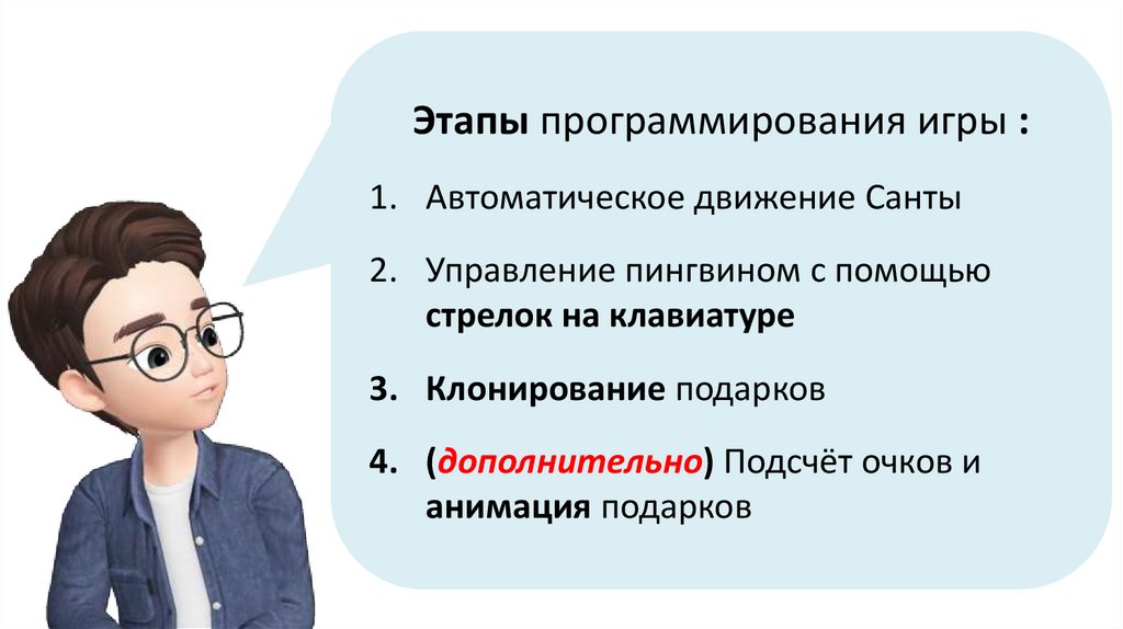 Этапы программирования игры :1. Автоматическое движение Санты