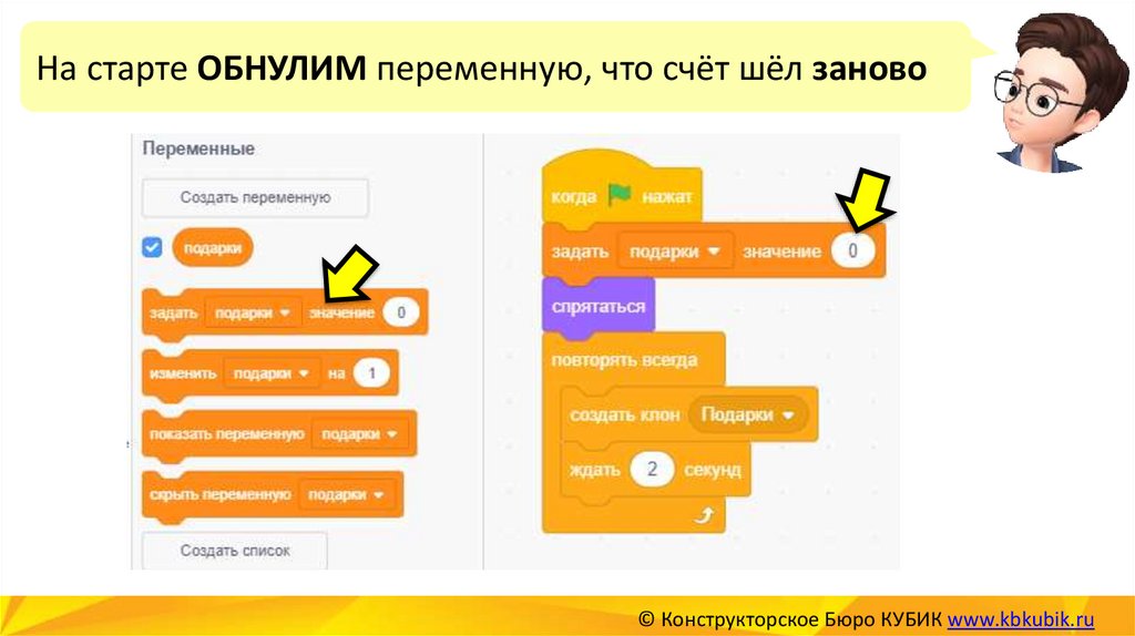 На старте ОБНУЛИМ переменную, что счёт шёл заново© Конструкторское Бюро КУБИК www.kbkubik.ru