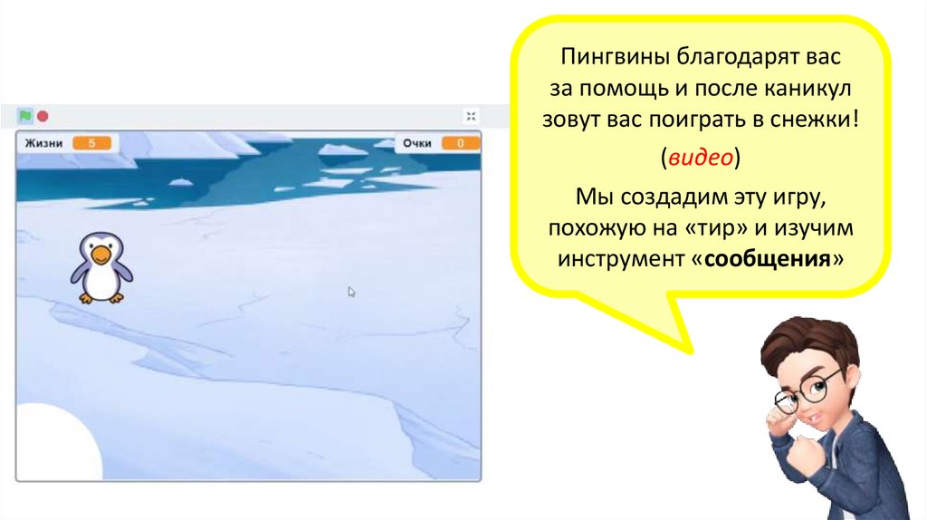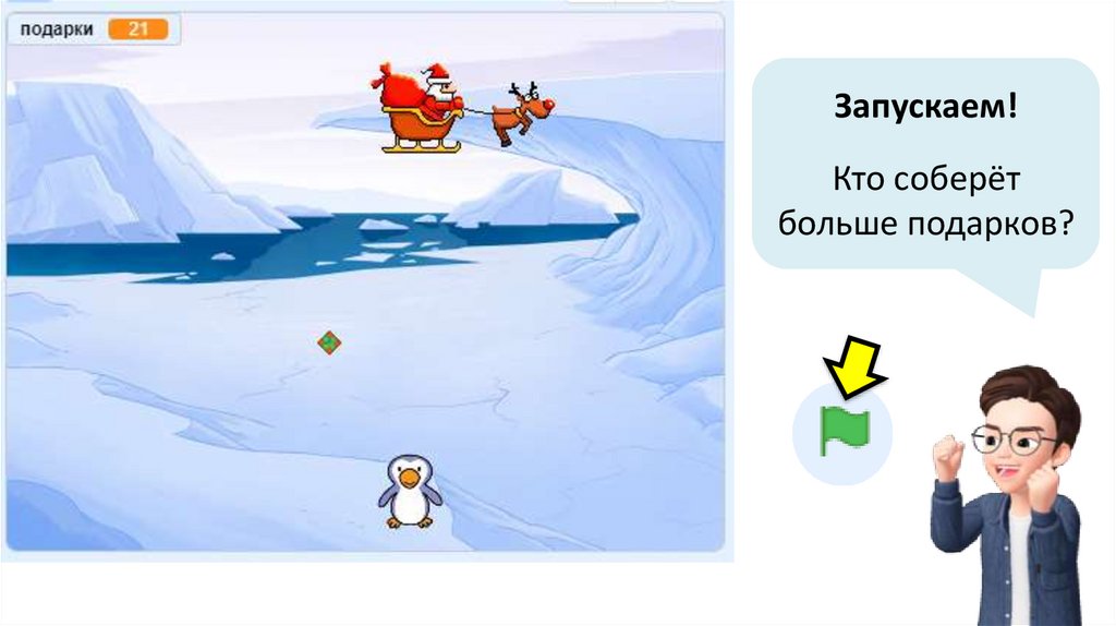 • Создать игру «Пингвин и подарки»,