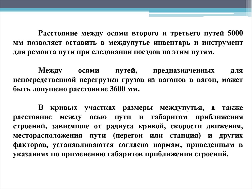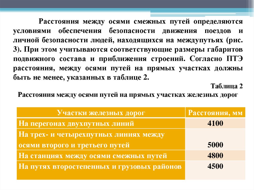 Рис. 3. Расстояния между осями путей на прямых участках перегона13.